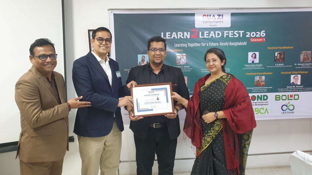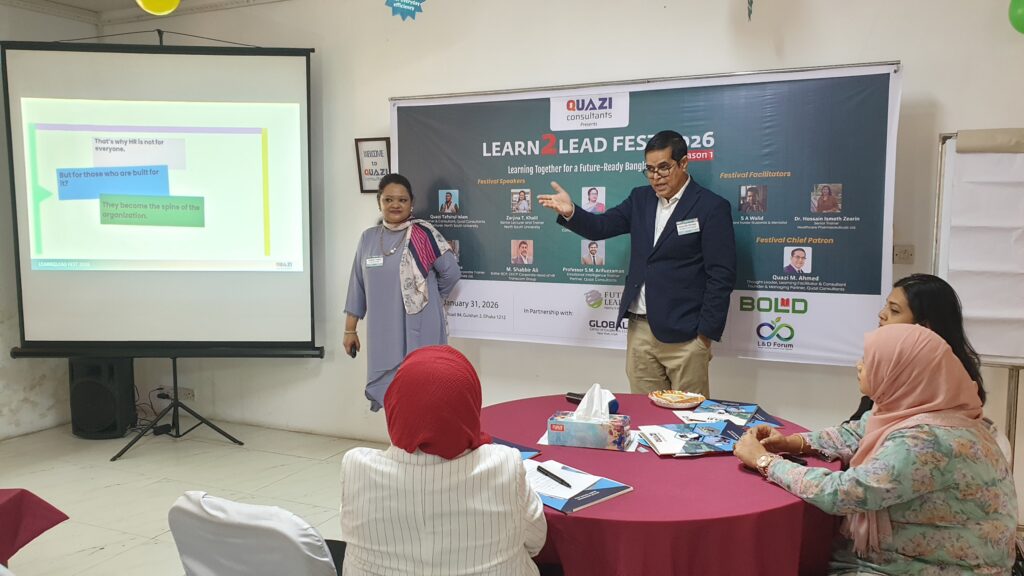 QUAZI Consultants, in partnership with BOLD, Future Leaders, Global Center of Excellence LLC (USA), BOND, and Bangladesh Coaching Alliance, successfully hosted Learn2Lead Fest 2026, bringing together HR, OD, Talent Development, and L&D professionals.