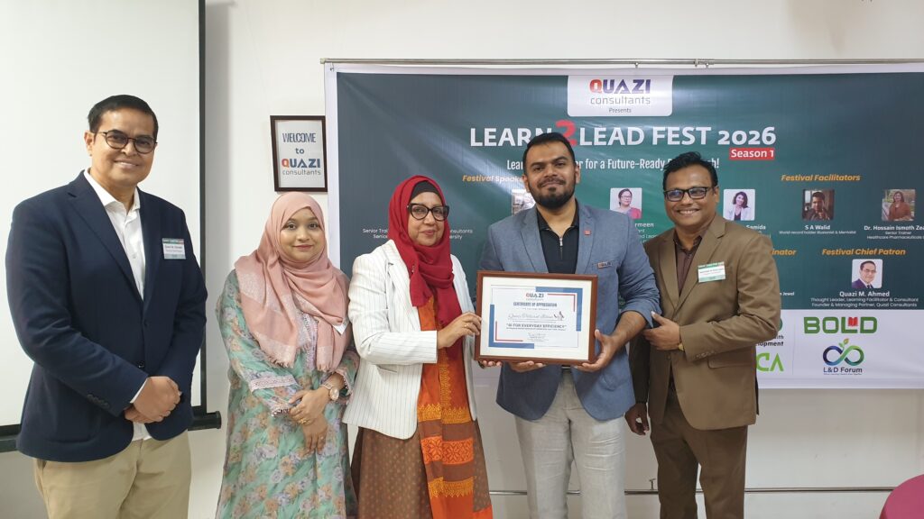 Through initiatives like Learn2Lead Fest, QUAZI Consultants reaffirms its commitment to fostering leadership excellence and strengthening organizational capacity across Bangladesh.